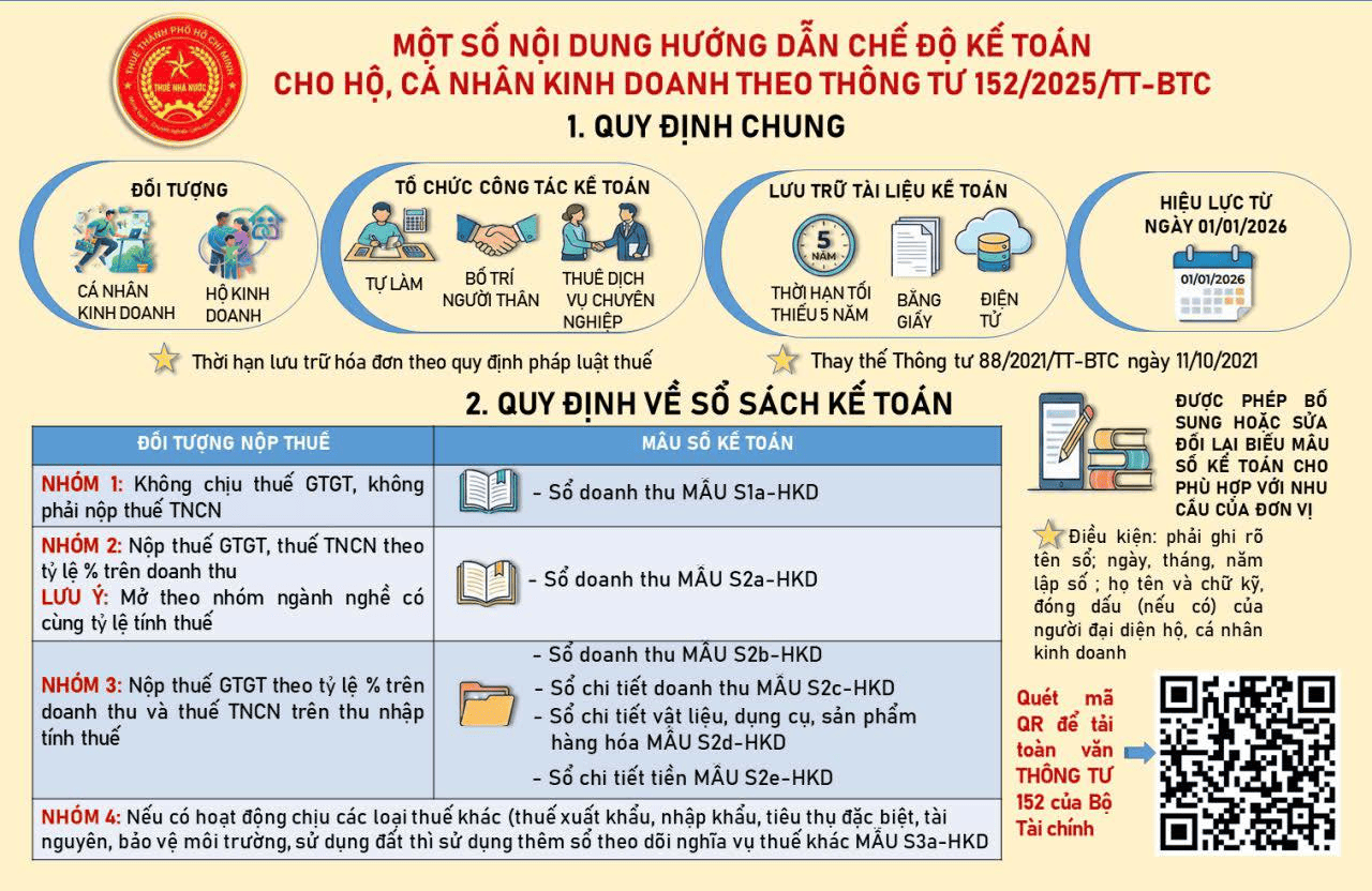 Thông tư 152/2025/TT-BTC ngày 31/12/2025 của Bộ tài chính hướng dẫn chế độ kế toán của hộ kinh doanh, cá nhân kinh doanh